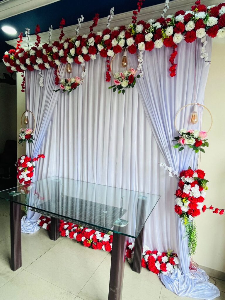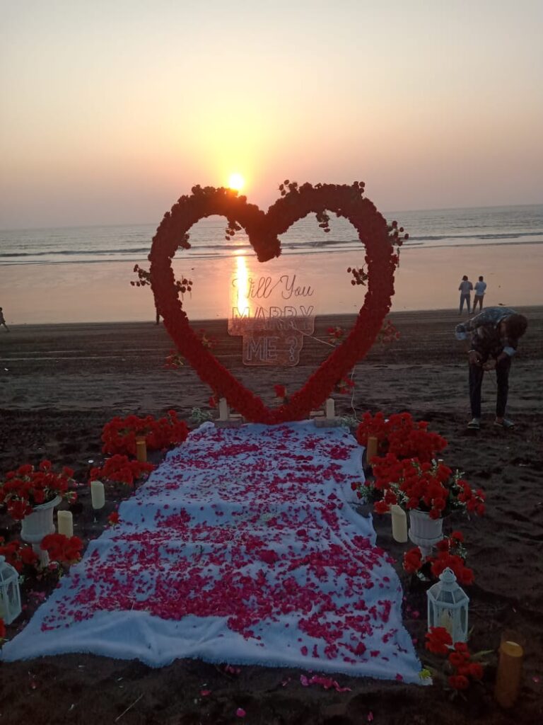 Think about where the proposal moment will happen and ensure the background is beautifully decorated. The photos from this moment last forever — a floral arch, petal pathway, or fairy light canopy behind the couple makes every shot stunning.